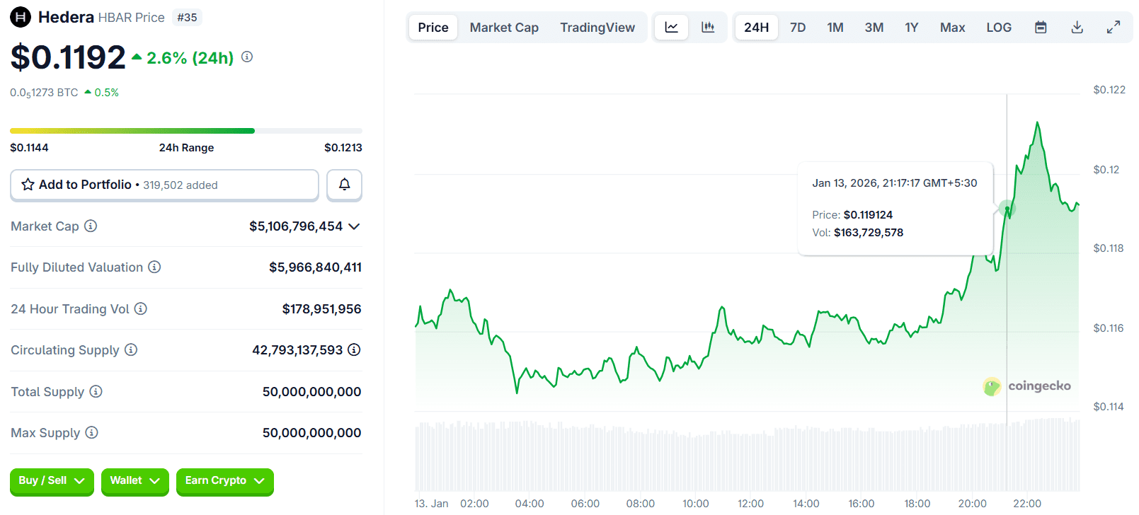 Hedera is progressing quickly with major updates. The network launched its v0.68 mainnet upgrade on January 13, improving efficiency for developers. The Hedera price currently hovers around $0.115, supported by a $5.79 billion market cap. Big institutions like Vanguard are offering ETF access, signaling confidence in the network’s ability to handle large-scale activity.