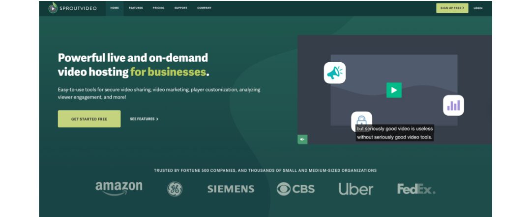 SproutVideo offers reliable video hosting for small to mid-size businesses with a clean interface, transparent pricing, and security controls that cover most use cases outside of full DRM.