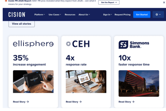 Cision operates an 850,000+ media contact database with annual pricing from $7,200-$10,000+. The integrated platform targets enterprise teams requiring consolidated multi-team coordination.