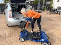 Real-life example: Mary prefers a travel scooter for weekend visits to her daughter because it breaks down into pieces small enough for her to lift into the car without help.