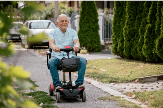 Real-life example: Anita chose a 4-wheel scooter to get around her suburban neighborhood and local park paths because it felt steadier on sloped driveways.