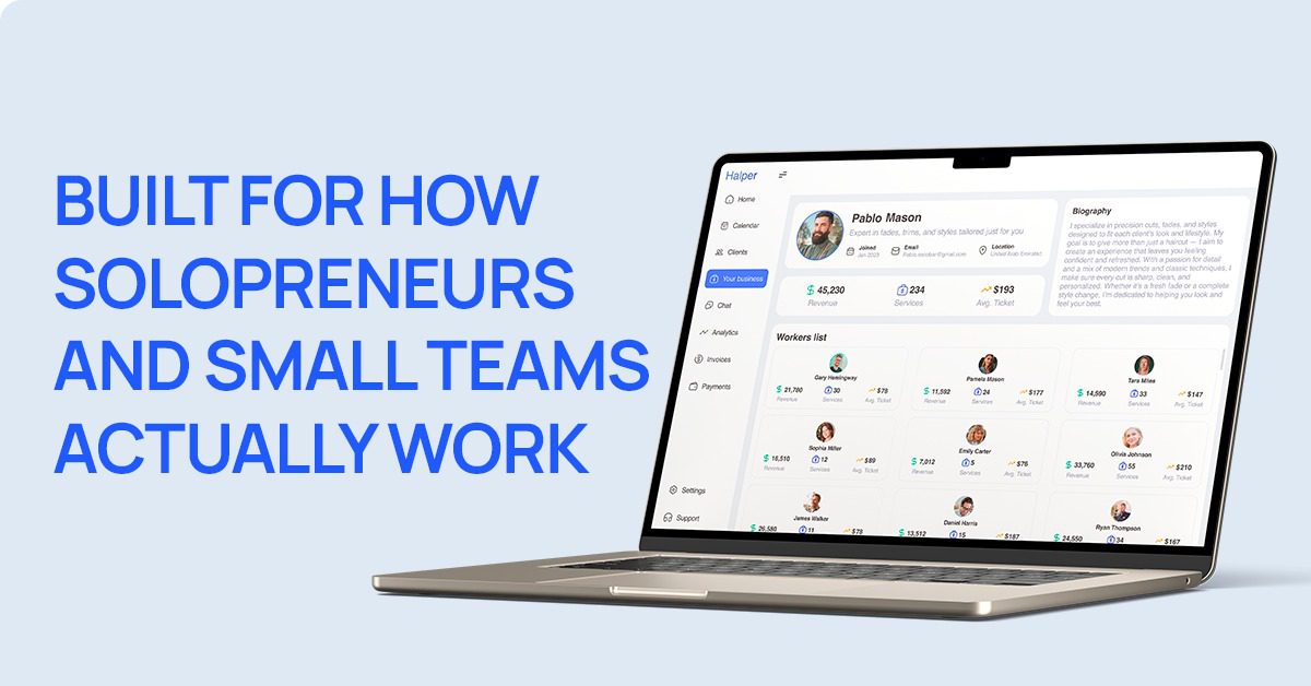 Halper is often associated with solopreneurs, but it is equally useful for small teams that need shared visibility and consistent communication.