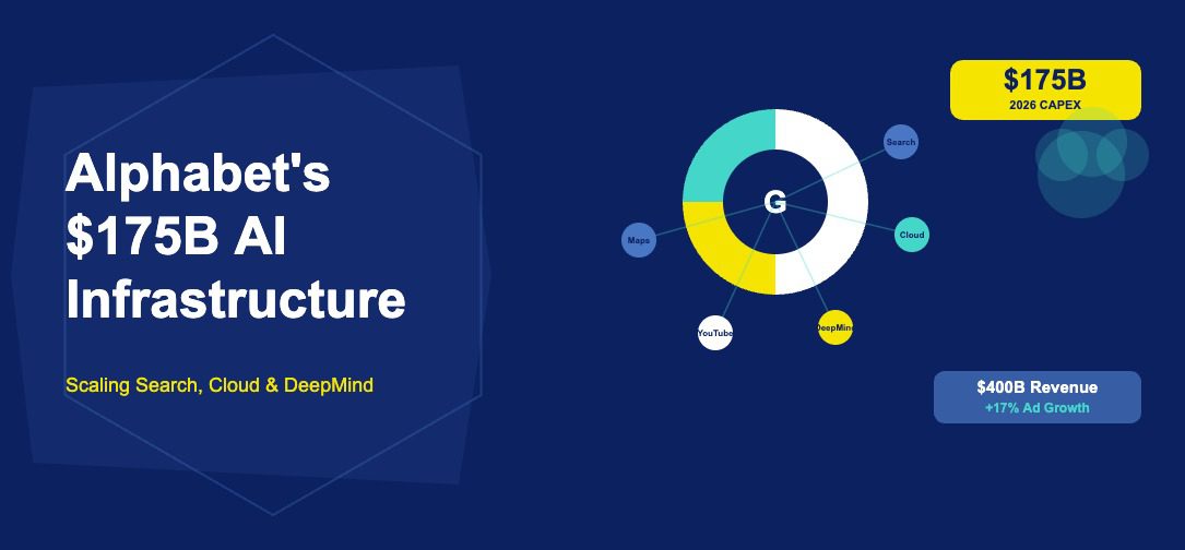 In Mountain View, California, a company that began as a search engine is making the largest single-year infrastructure investment in its history. Alphabet guided 2026 capital expenditure of $175 billion to $185 billion, a figure designed to scale its artificial intelligence capabilities across Google Search, Google Cloud, YouTube, DeepMind and every other product in its ecosystem. This is not merely an upgrade to existing infrastructure. It is a fundamental reimagining of what the company needs to build in order to remain competitive in an era where artificial intelligence determines the winner in search, cloud computing, advertising and enterprise software.