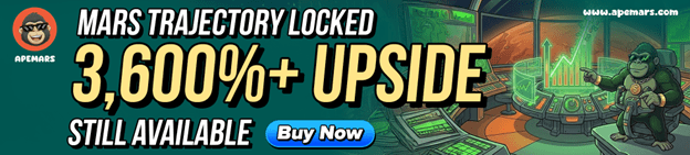 At the same time, early-stage presales are regaining momentum as market participants look for structured entry points before mass adoption. This is where APEMARS stands out. With Stage 13 currently live at $0.00014493, and a planned listing price of $0.0055, the project introduces a clear pricing gap driven by its presale structure. In a market where timing is everything, APEMARS is gaining traction among those evaluating the best cryptos for beginners and searching for a potential 1000x meme coin opportunity.