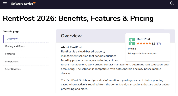 You can get RentPost at only $29/month while paying $1 per unit/month, with a free 30‑day trial. Other than that, there are also enhanced screening reports, which you can access as optional add‑ons.
