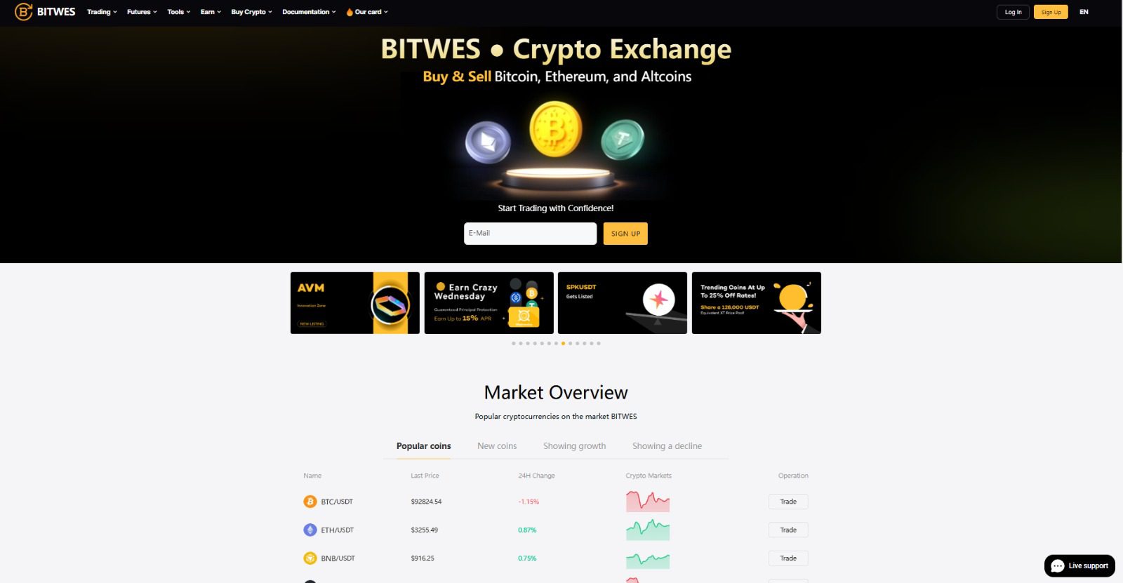 Bitwes ensures that traders at all levels, from beginners to professionals, can trade with confidence and convenience. Whether you’re looking to invest, trade actively, or explore new crypto assets, Bitwes provides the tools and security you need for a successful trading journ.
