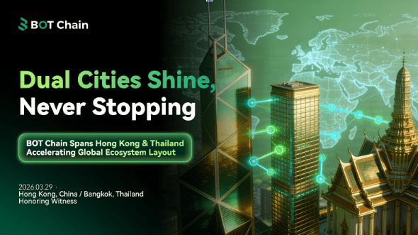 March 23, 2026, according to official confirmation, BOT Chain, the world’s leading modular algorithmic network, will simultaneously host two top-tier industry events in Hong Kong, China, and Bangkok, Thailand, on March 29, 2026. This marks BOT Chain’s first “dual-city linkage” globalization strategy, signaling its comprehensive shift from technical narrative to full industry chain implementation, and from regional deep cultivation to the deep waters of international capital.