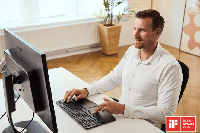 The centrally positioned touchpad developed by Contour Design introduces a new approach to desktop navigation designed to reduce unnecessary reach and support more natural working posture.