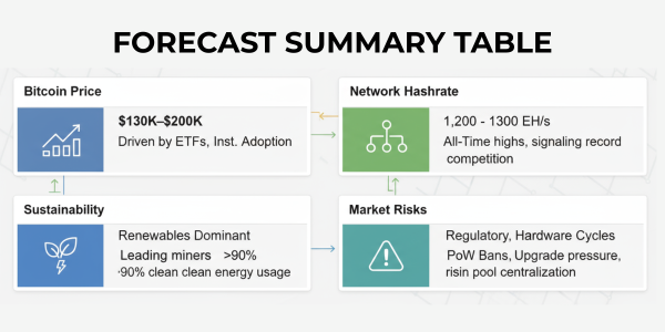 The crypto mining industry in 2026 is forecast to undergo significant growth fueled by surging Bitcoin prices, broader adoption, and continuous technological innovation. Expert predictions indicate Bitcoin’s price could rise to between $130,000 and $200,000 per coin, while the network hashrate may reach unprecedented levels of 1,300 EH/s by the end of 2026.