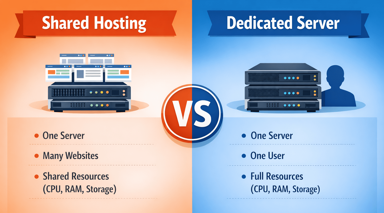 • Dedicated servers are best for sites with lots of traffic, heavy apps, or strict compliance needs.