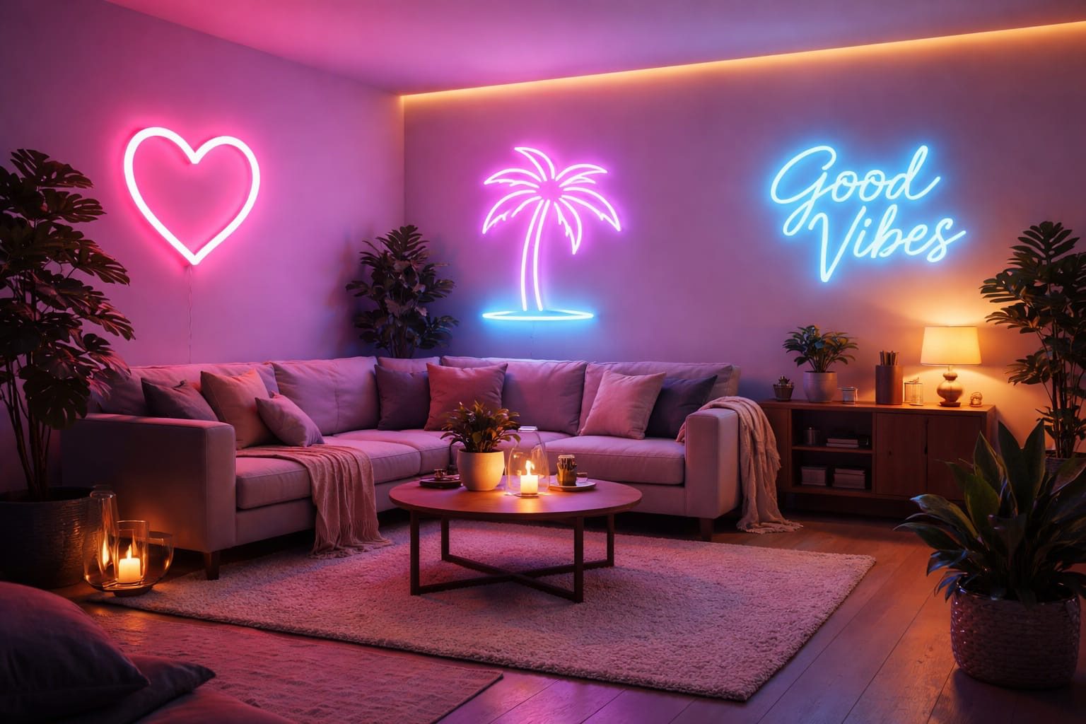 LED signs are widely used because they are energy-efficient and versatile. They work well in both bedrooms and living rooms. You can use them to highlight a specific corner, create a cozy atmosphere, or add a modern touch to a minimal setup.