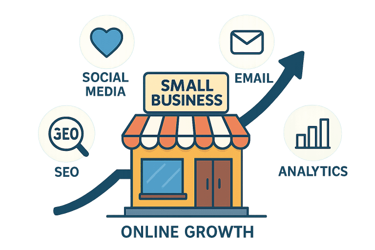 Digital marketing encompasses the full spectrum of online activities designed to promote products, services, or brands. For small businesses, it provides a highly cost-effective alternative to traditional marketing methods, enabling them to reach a broader, more targeted audience without the high expenses associated with print, TV, or radio advertising. Through strategic use of digital channels—such as social media, email, search engines, and websites—businesses can connect with potential customers where they spend most of their time: online. This approach allows for real-time engagement, personalized messaging, and measurable results, helping small businesses build brand awareness, nurture leads, and drive sales efficiently. By leveraging digital marketing, even limited budgets can achieve meaningful visibility and growth in today’s competitive marketplace.