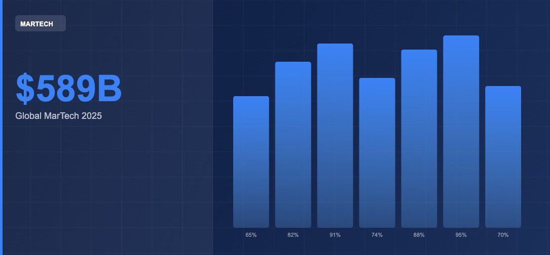 North America accounts for more than 35.8 percent of global MarTech market share, according to IMARC Group, driven by the concentration of dominant technology platforms, the sophistication of US enterprise marketing operations, and the density of venture capital investment in marketing software. The United States is home to the industry’s most influential platforms and continues to set the pace for global adoption. The $589 billion figure encompasses spending across software licences, platform subscriptions, professional services, and managed technology deployments, the full breadth of what modern marketing infrastructure actually costs to build and run.