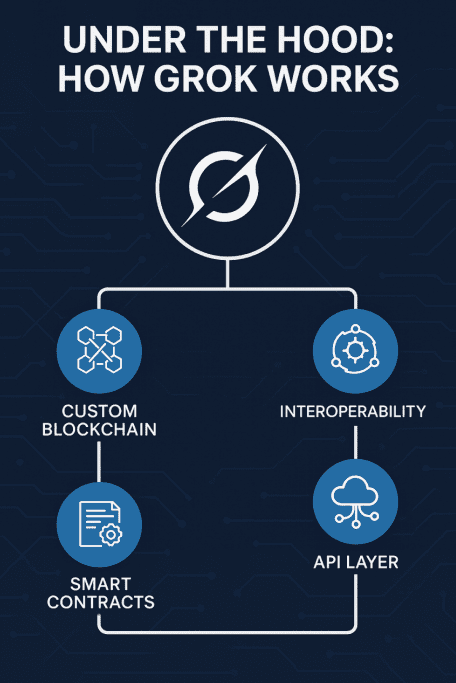 GRO82X’s architecture is built for speed, transparency, and scalability — three core attributes for any AI-integrated economy. Its hybrid blockchain uses an optimized consensus mechanism that achieves high throughput while maintaining decentralization.