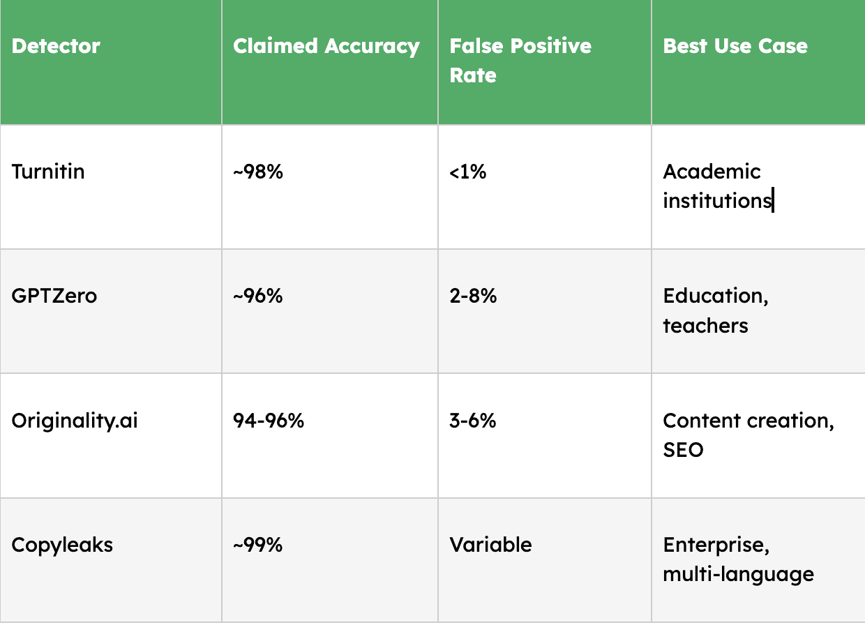 Different AI detection tools boast different accuracy rates, but independent tests tell a more complicated tale. It’s important for users to be able to decide when to use one tool over another.