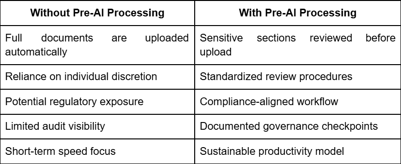 Beyond mere security, controlled workflows provide a framework for long-term resilience—protecting brand reputation, preserving client trust, and ensuring regulatory compliance. When every document is prepared with intentionality, governance becomes a byproduct of daily work rather than a reactive hurdle. This disciplined approach to AI does not just reduce exposure; it creates a lasting competitive advantage.