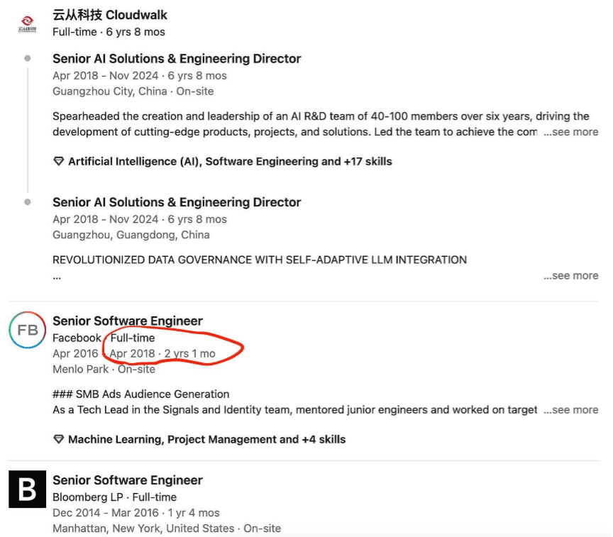 Working simultaneously for a U.S. big tech and a fully state-linked Chinese AI firm overseas is a serious issue, especially at a senior level. Publicly available information indicates CloudWalk’s line of work was widely documented at the time, and that the transition occurred while his U.S. employment was still ongoing.