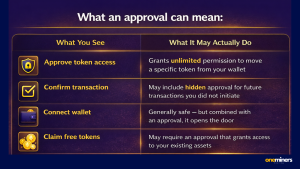 Over the past several months, a growing number of people have walked into OneMiners locations in Prague and New York with the same problem. They connected their wallet to a website. They approved a transaction. They did not understand what they approved. And by the time they realized something was wrong, their assets had moved, not because someone hacked their wallet, but because they had unknowingly given permission for that movement.