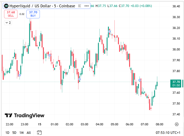 The hyperliquid price currently sits at $37.68, up 22% over the past 7 days. Market cap stands at $9.66 billion, with trading volume at $257.05 million, down 36.9%, reflecting the quieter conditions across most crypto exchanges right now.