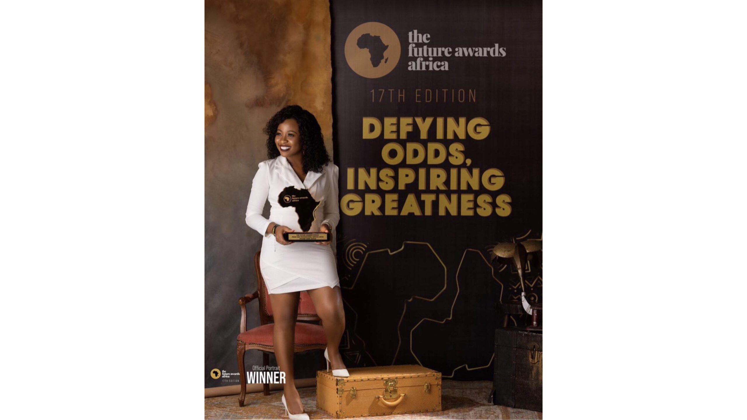 Precious Akpan, winner of the Intrapreneurship Award at The Future Awards Africa 2023, photographed in the official winners’ portrait session during the 17th edition of the awards ceremony.