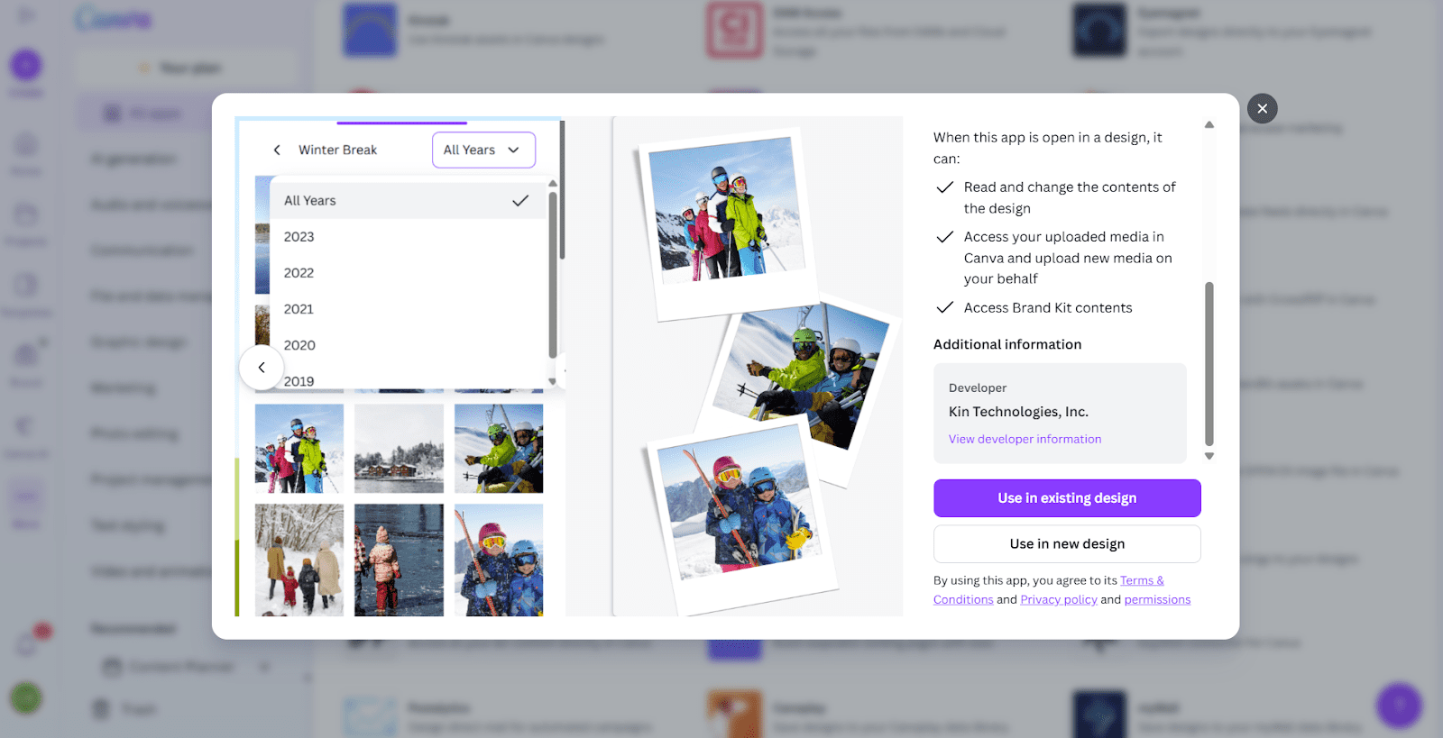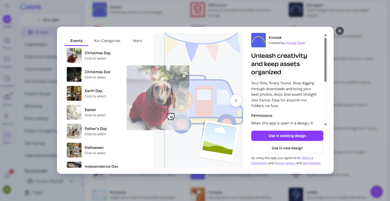 Q: How does Kinstak’s AI-powered tagging and organization change the way a designer interacts with their media library inside Canva?