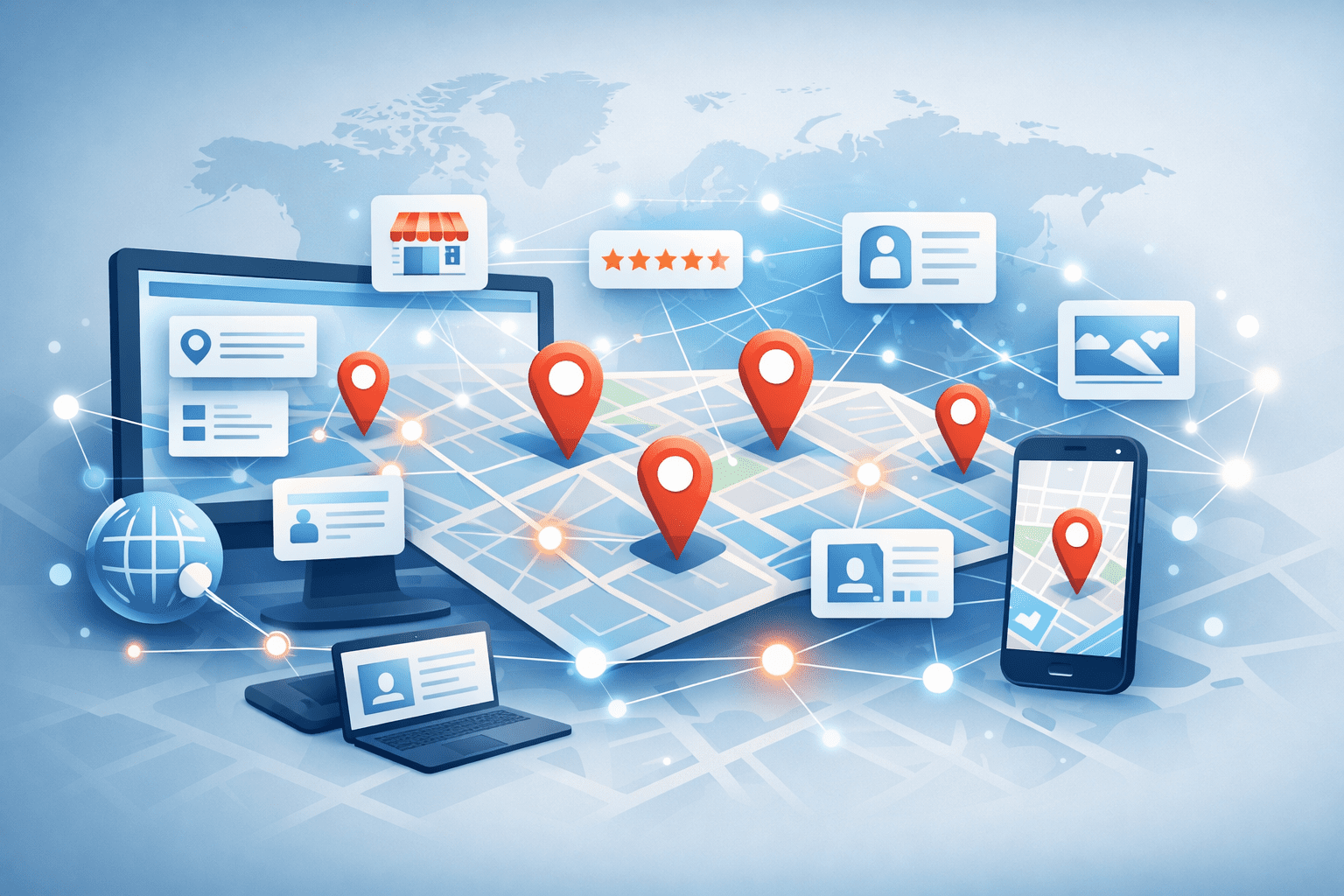 - Management of business listings across important platforms