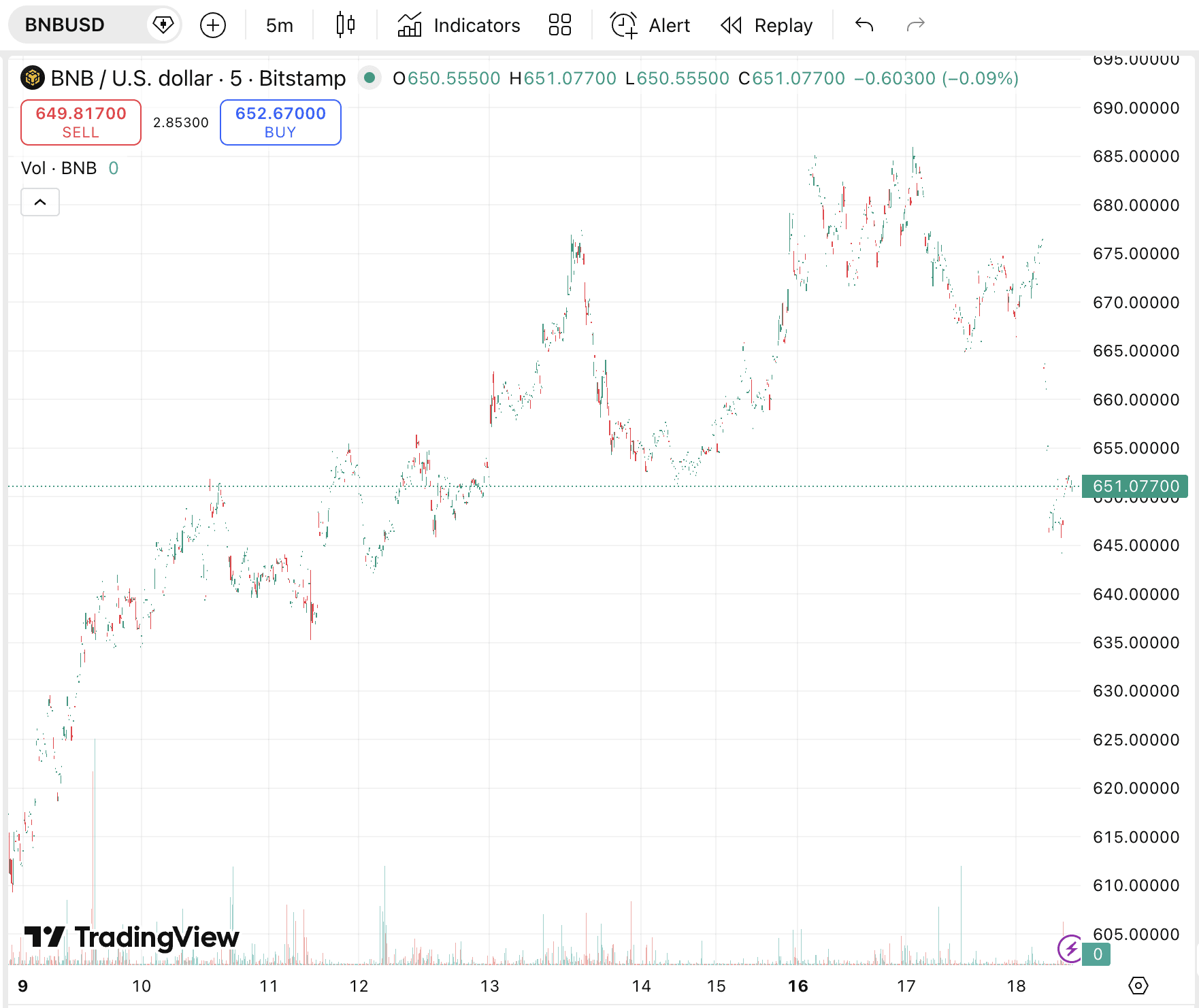 Currently, the price of BNB is trading at $649.82. It is down 2.9% in the last 24 hours. The current market cap is valued at $88.83 billion. The trading volume is valued at $1.91 billion.