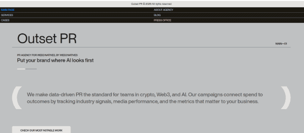 Outset PR operates a network spanning more than 3,000 publishers across Web3-native and mainstream news sites, including tier-1 outlets and highly targeted tier-2 and niche platforms. The agency recognizes that credibility is built not only through high-profile placements but also through sustained visibility in specialized media where early trust and contextual authority are formed.