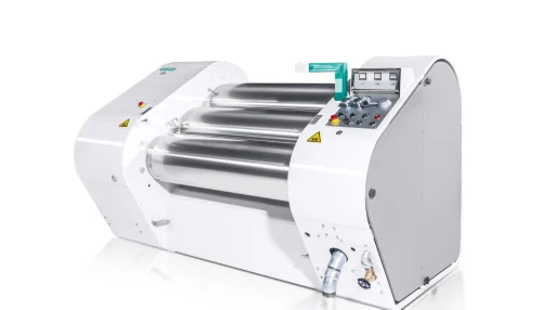 For three-roll mills, the primary advantage is the dispersion of fine particles in viscous materials. The temperature in the rolls is accurately controlled using cored rolls to prevent the degradation of heat-sensitive compounds. The open design of the mill allows visual feedback and real-time fine-tuning for perfect-rendering product output.