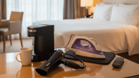 - In-room items like coffee makers and hair dryers