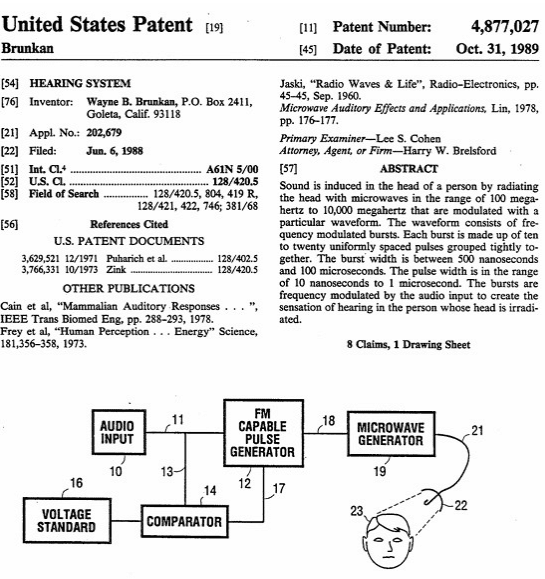 - US4877027A – Hearing System Paten (Hearing Voices)