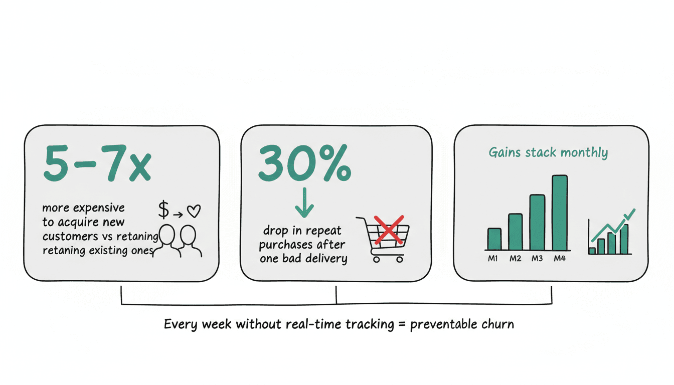 The real damage is invisible. Customers who never complain simply leave. They find a competitor whose tracking page shows a live driver location and an accurate ETA. You never hear from them again.
