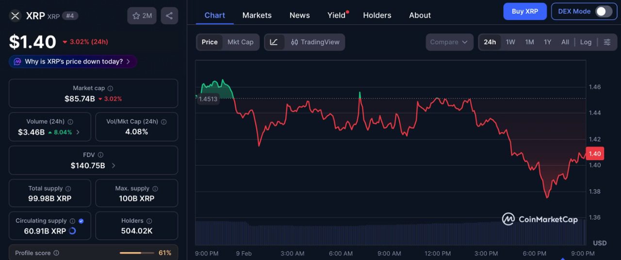 XRP has regained credibility since regulatory clarity improved, and that matters because confidence is what keeps institutions and long-term buyers engaged. That strength is visible in how XRP has stabilized instead of collapsing with every wave of volatility. Right now, Ripple (XRP) is trading around $1.40, holding in a tighter range as traders wait for a stronger catalyst.